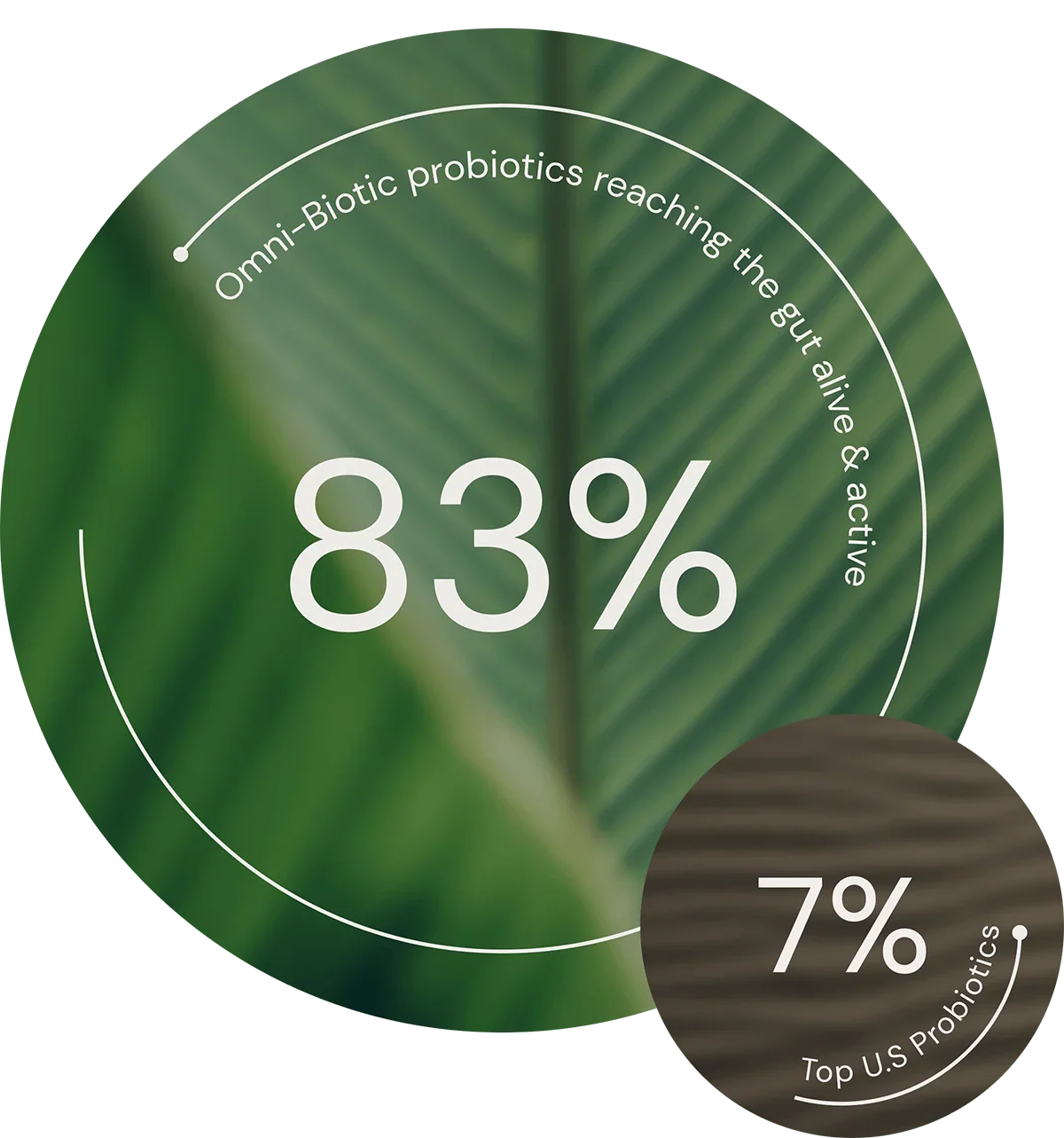 Omni-Biotic’s powder matrix ensures 83% of probiotics reach the gut alive and active, compared to an average of 7% in top US brands.