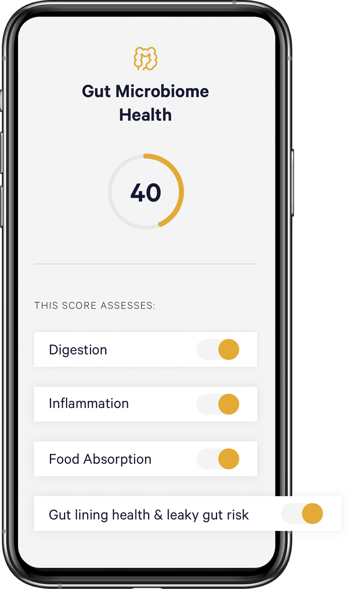 Our Health Intelligence™ Test goes beyond Gut Intelligence™ to analyze how the health of your gut microbiome and digestive health are helping or impairing other beneficial functions in your body that keep you healthy including your immune system, your cellular health, and how your body is aging internally.